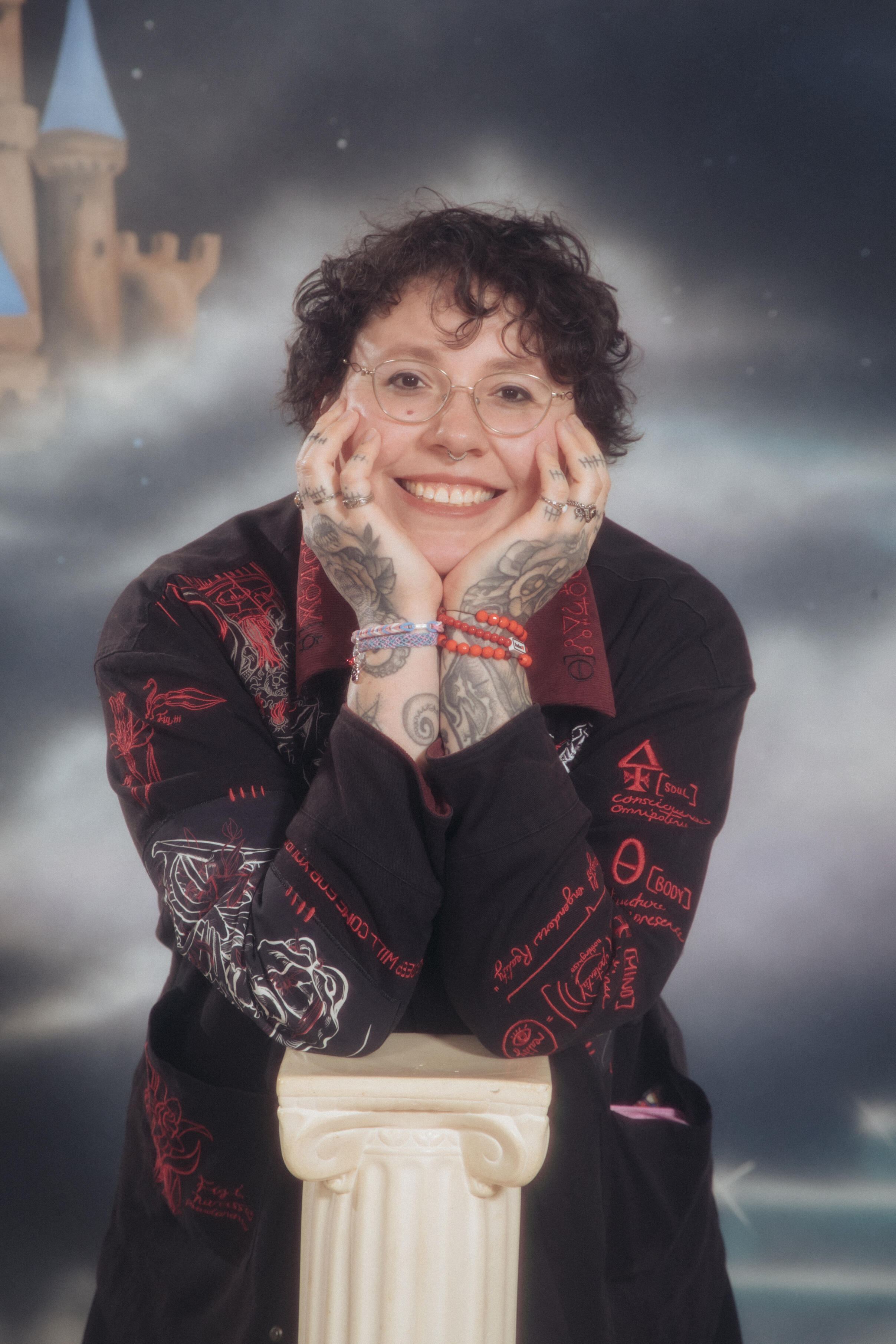 Holly has been tattooing since 2020 and making art since childhood. She draws inspiration from the fantastical creatures and characters of film, anime, and video games, as well as art history. She enjoys designing custom tattoos that mix queerness with the spooky, the cute, the badass, and the sexy.Originally from the Seattle area, Holly has a deep admiration for nature. She enjoys the ocean and the woods, and grew up on a rural island in the Puget Sound. She moved to Portland to pursue an art degree, but didn't take to academics. She spreads humor and good cheer during her appointments and adores a good pun.Holly's favorite video game is Bloodborne, her favorite genre is horror, and her favorite movie is Kiki's Delivery Service. She lives in the Portland area with her wonderful wife and their goblin-esque cats.